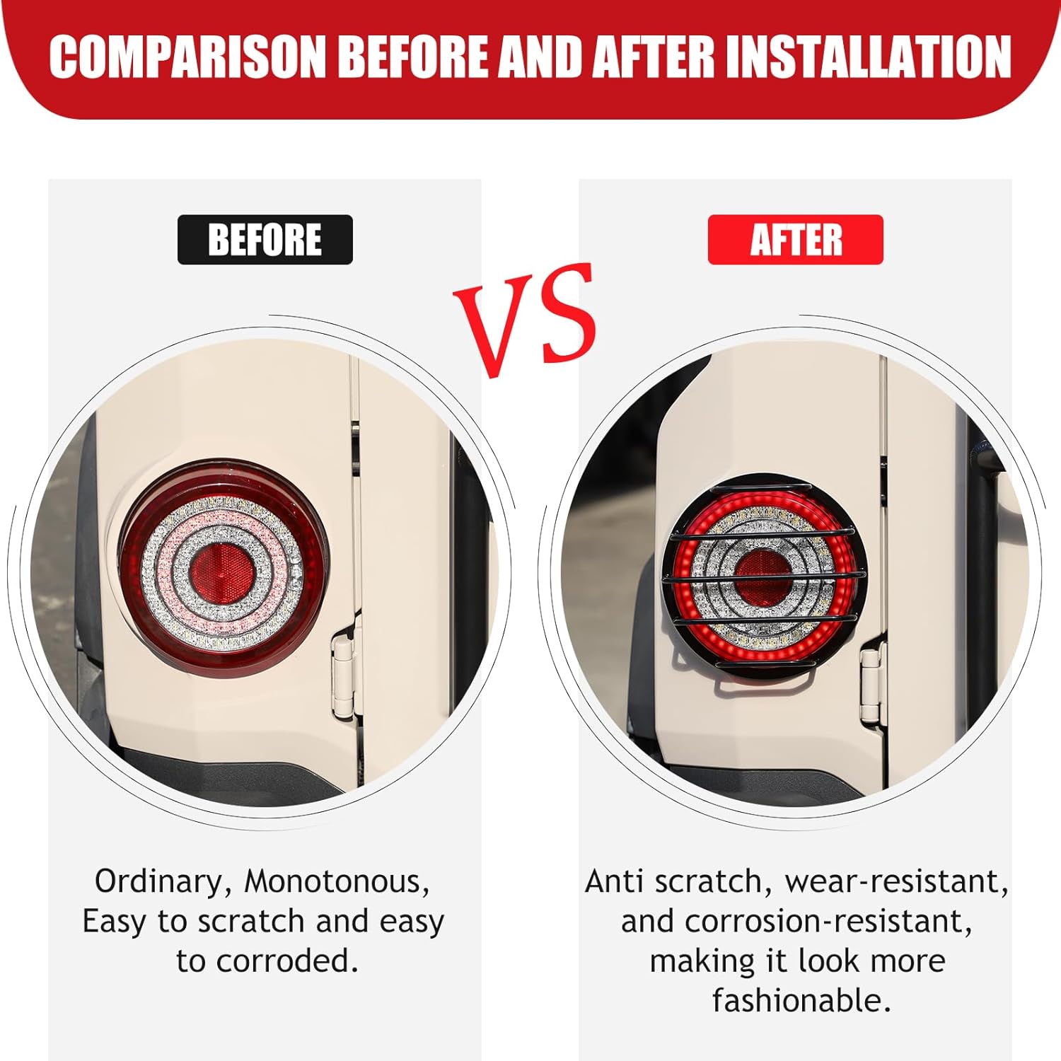 Applicable Models:Compatible with Ineos Grenadier 2020-2024.Please make sure your car model matches this taillight cover before ordering.Specification:Product Condition: Brand New & High QualityPacking List:2PCS Taillight coverMaterial: Carbon SteelColor: BlackFeatures:Made of high quality carbon steel, sturdy and durable.Simple design, provide a fashionable decorative style for your car.Taillight cover can prevent the taillight being scratched.Easy installation with 3M adhesiveClean the surface area where you need to paste and then wipe the water with towel or tissuesRemove the cover on the 3M adhesiveThe 3M adhesive position should align properly on the placeFinally, press the decorative piece by hand, making it more solid on it. Please press 20-30 seconds or more when pasting and don’t dip the item into the water within 24 hoursAttentions:Please confirm your car model is as same as the picture before submitting your orderIn case it falls off for some car models, just add some tape and put the cover back on, then they will work perfectly
