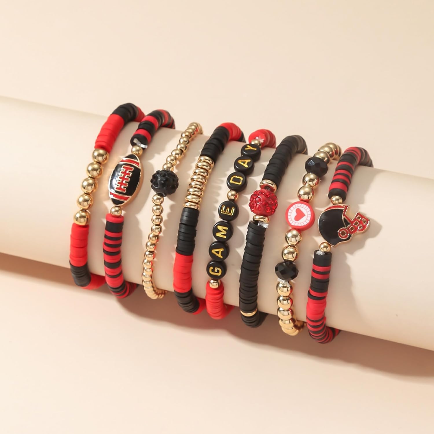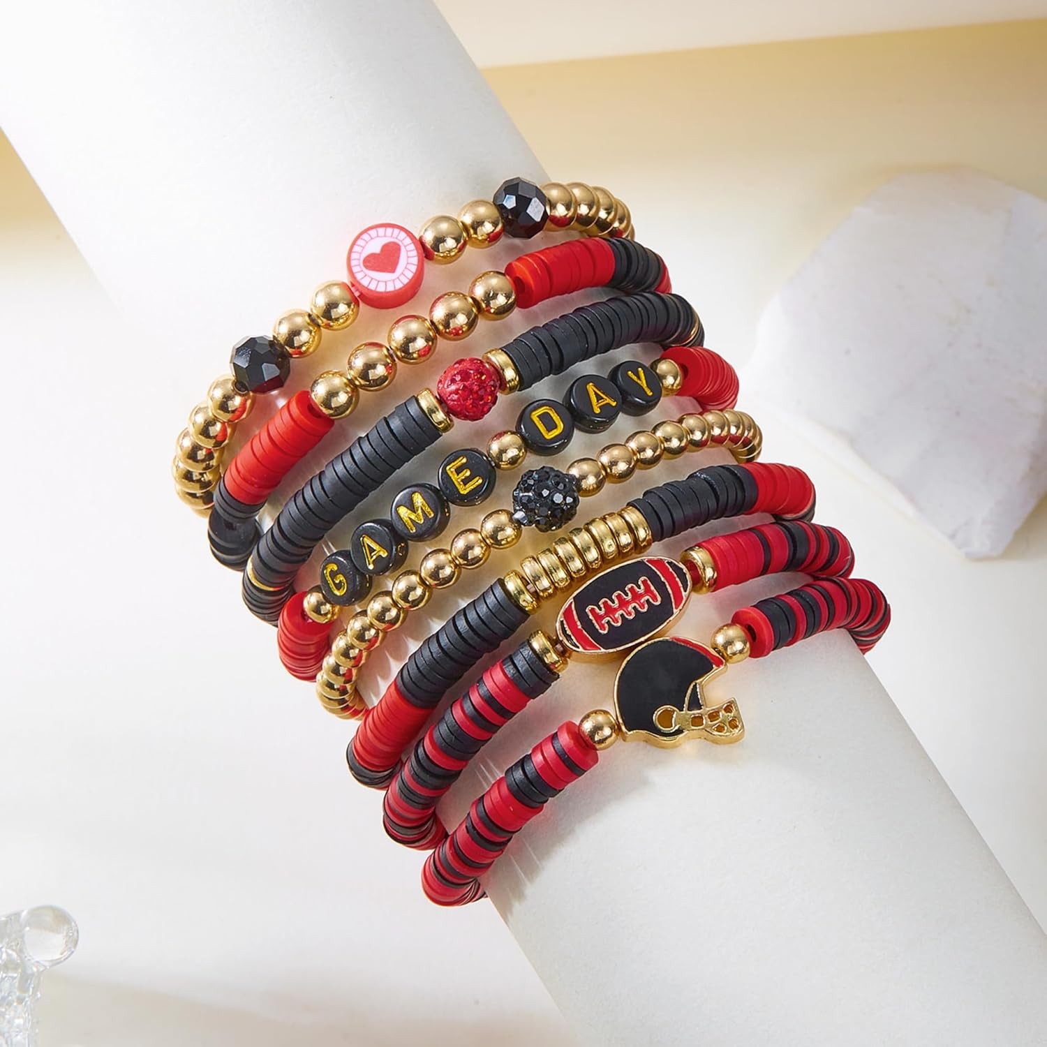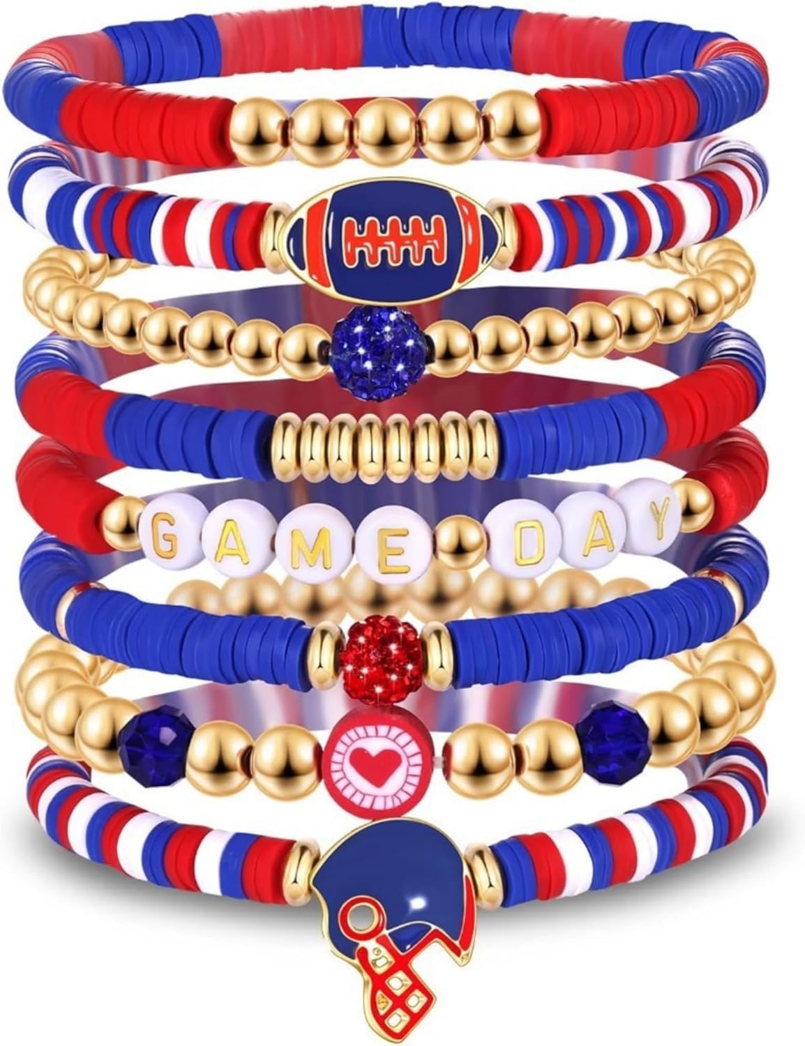 8-Piece Set Rugby Bracelet Multi-Layer Stacked Friendship Bracelets with Letter Heart Crystal & Soft Ceramic Bead for Women