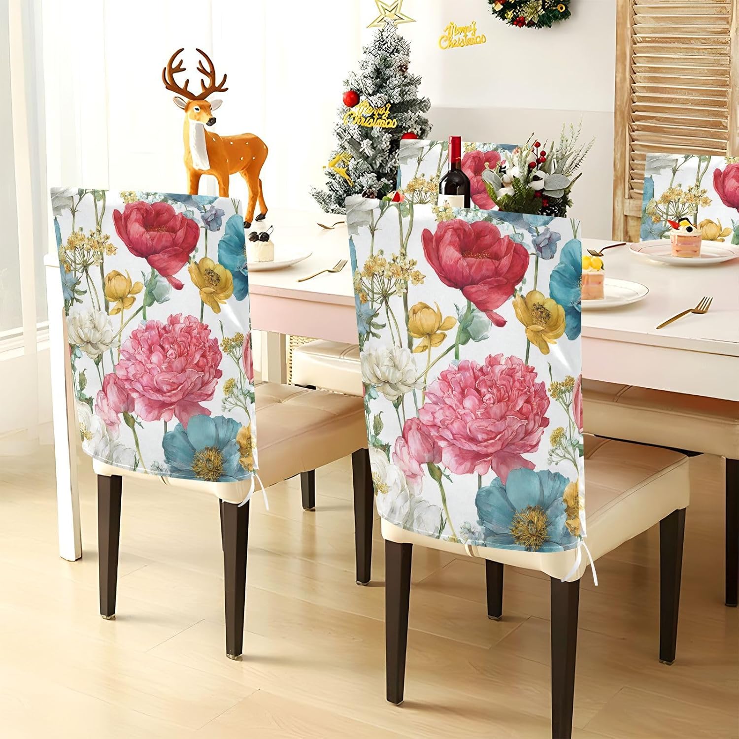 Chair Cover Material made of polyester,comfortable and soft to touch,reusable and suitable for long term use Features easy to install and remove, tie rope design at the bottom,machine washable Stylish Chair Decoration With beautiful pattern,it can be used for family party/ birthday party/wedding/ holiday party to add atmosphere, also can be used for chair decoration in living room, dorm, kitchen dining room,bedroom to bring protection to the chair while avoiding stains to dirty the chair back. Easy To Care Machine washable, Not washing with hot water, Not bleaching
