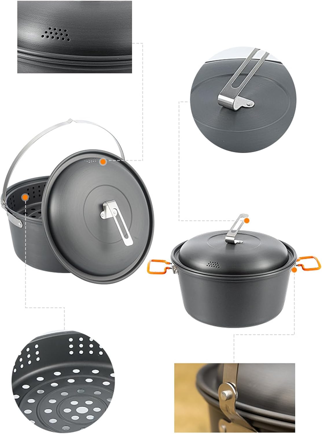Aluminum Outdoor Camping Pots 4.50L Large Capacity Multifunctional Cooking Pots Cookware for Picnics, Driving ToursFeatures:outdoor with our 4.50L large capacity outdoor soup pots, great for satisfying hunger of a group during any adventure.Craft from aluminum alloy materials, this pots is great for steaming rice, or boiling noodles, its great for any cooking need in wild.Great for camping enthusiasts and driving tours aficionados who relishes the blend of travel and gourmets outdoor cooking.Whether you're setting up camp or road travel, this practical pots ensures you can arousing up a hearty meal wherever yours journey take you.This outdoor camping pots is the typical cookware for communal feasts at your next campfires gathering or picnics.Specifications:Materials: Stainless Steel+Aluminum AlloyColor: As The Picture ShowsType: Double Handle/Hanging (Optional)Size: approx.22cm/8.66in(More Size Detail, Please See Picture.)Package Includes:1Pc Camping PotsNote:Please allow 1-2cm error due to manual measurement. Please make surer you not mind before your bid.Due to the differences between different monitors, the picture may not reflect the actual color to the item. Thanks!