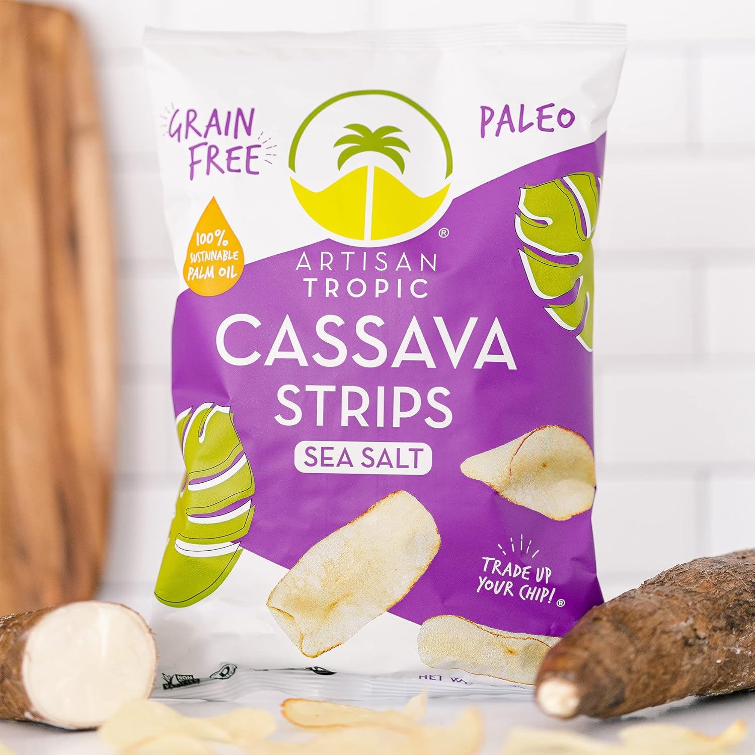 ARTISAN TROPIC Cassava Strips - Vegan, Paleo, Gluten Free Chips – Non-GMO Healthy Snack Potato Chip Alternative for Lunches, Dipping, Parties - Baked Cassava Flour Chips – Sea Salt (4.5 Oz - 6 Pack)
