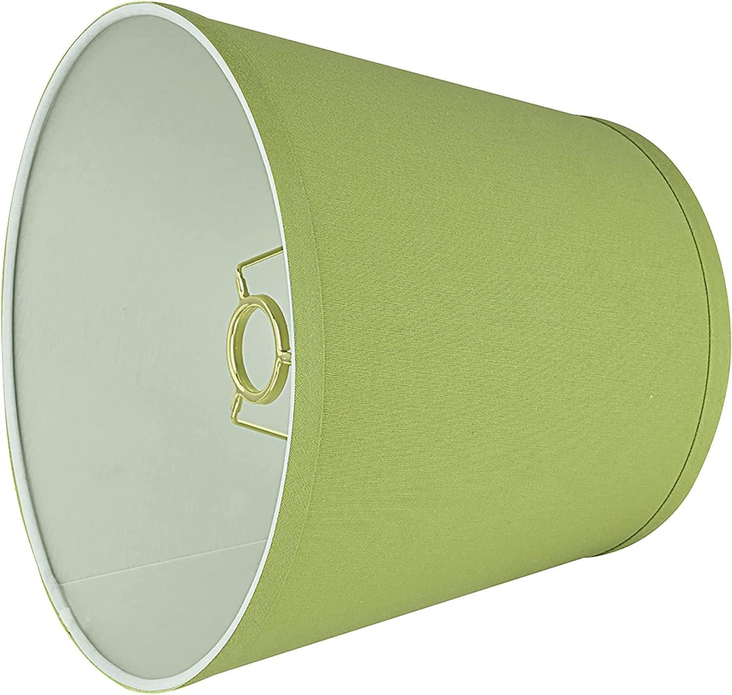 Aspen Creative offers a 1 pack of empire shaped lamp shades with uno fitter. Made with lime green colored fabric. The lamp shade dimensions are 7 1/2 inch top, 10 inch bottom, 8 1/2 inch slant height. This lamp shade is a UNO construction, designed to fit sockets that measure 33mm wide. UNO fitter ring inner diameter is 33mm. Our hardback shades use Virgin Styrene backing board to produce a warm, natural & smooth light – more appealing than shades made with recycled Styrene board that can crack & yellow over time. Suitable for table lamps, accent lamps, vintage lamps, candle stick lamps, kid's room lamps, bedroom lamps, bedroom table lamps, night stand lamps, reading lamps, bedside reading lamps, living room end table lamps and bedroom night stand lamps.