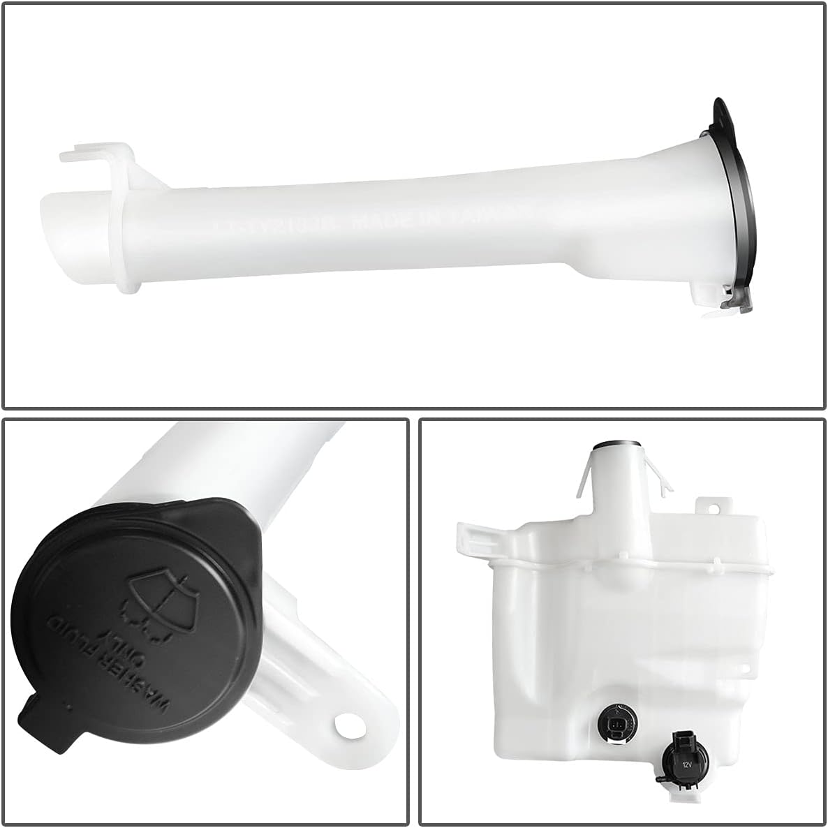 Over time and repeated usage and weather, your windshield washer reservoir may crack leaving you unable to wash your windshield. Replace it at a fraction of the cost of a dealer part. Designed to be a factory replacement and made to OEM standardsPackage Included:1 X Windshield Washer Reservoir1 X Reservoir Cap1 X Filler Tube1 X Washer Fluid Pump1 X Fluid Level SensorThis product is compatible with:Compatible with Toyota Corolla 2014-2016Fits Canada Built Models with Fluid Level SensorNotes:OEM Part Number: 8530102050 8531502510 8531502510PFM 8533060190Parkslink Number: TO1288200