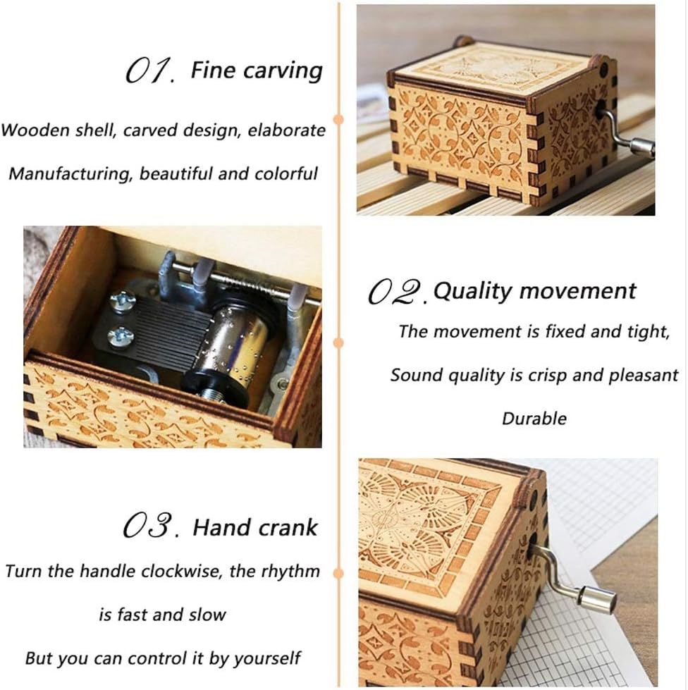 【High Quality Material】This music box was made of high quality material, high quality music movement, low noise, clear and accurate tune, smooth handle, will not go out of tune after a long time use!Material: woodStyle: retro nostalgicItem: Crafts Decoration Music BoxTips:If you are at all unsatisfied, please contact us and we will be happy to assist you, we will provide solutions within 24 hours.Note: manual measurement, there is a slight error, the size is for reference only.About color difference: The product is shot with independent physical objects, but due to shooting technology, lighting, environment, display parameters and other problems, there may be color difference between the actual object and the received picture. Actual colors are based on actual objects.
