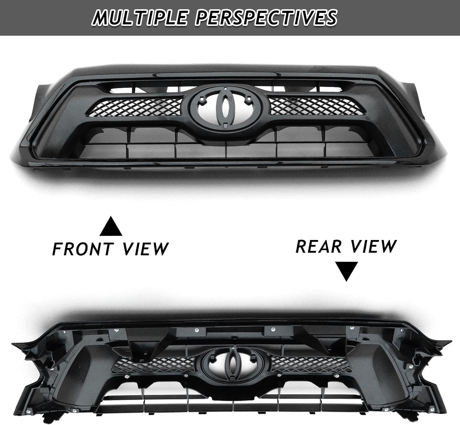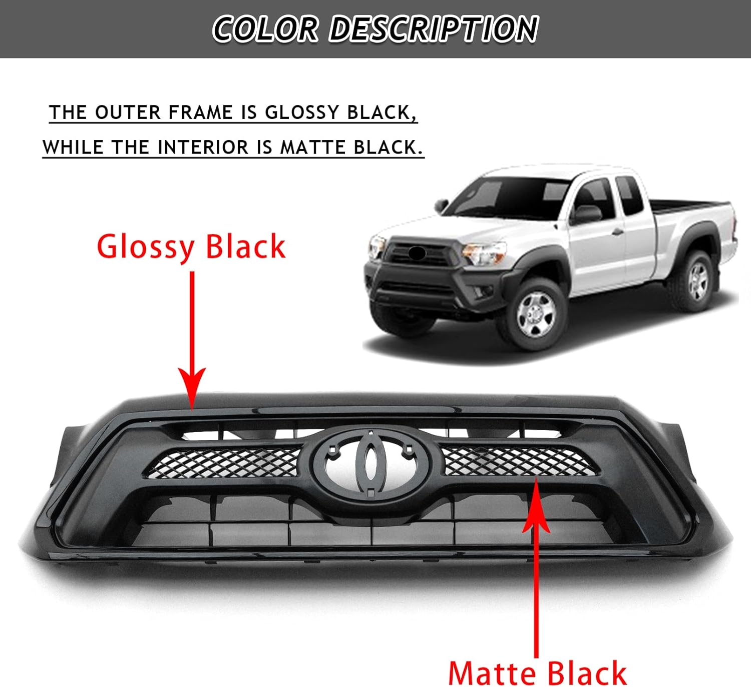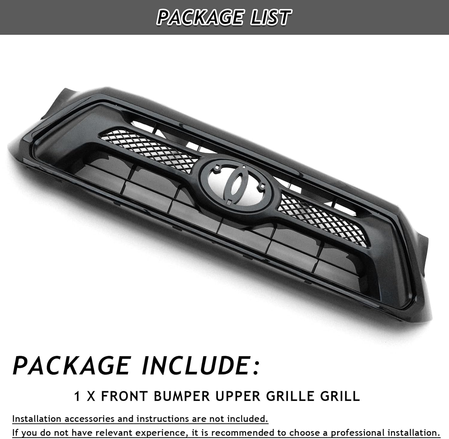 A New Front Grille Bumper Mesh Grill Assembly Fit For 2012 2013 2014 2015 Toyota Tacoma Pickup Truck Helps restore your vehicle to like-new condition. Features: Made of high quality Plasic, good durability, withstand rough road wear and the test of time. Lightweight design can reduce the weight of the car to reduce fuel consumption. Perfectly matched to the original car, the black color scheme adds beauty to your car. Quick and easy to install. Can be installed in a short time without any cutting or drilling, matching the original installation holes perfectly. Specifications: Brand: Bewild Materials: Plastic Package Include: 1 × Front Bumper Upper Grille Assembly Replaces OE Number: 5310004481C0, TO1200352 Range Of Application: Compatible with 2012 2013 2014 2015 Toyota Tacoma Pickup. Thank you for your purchase and support!