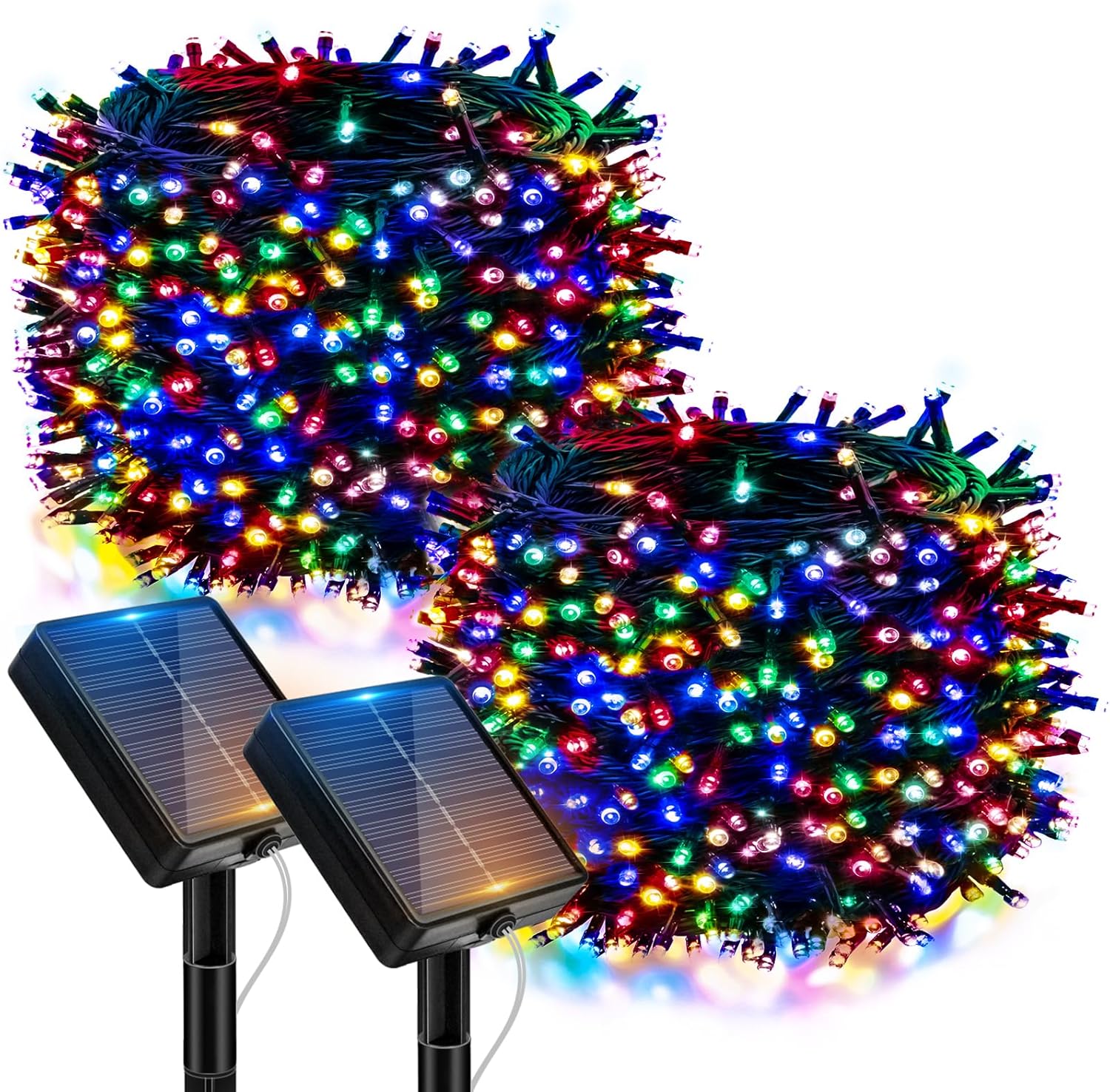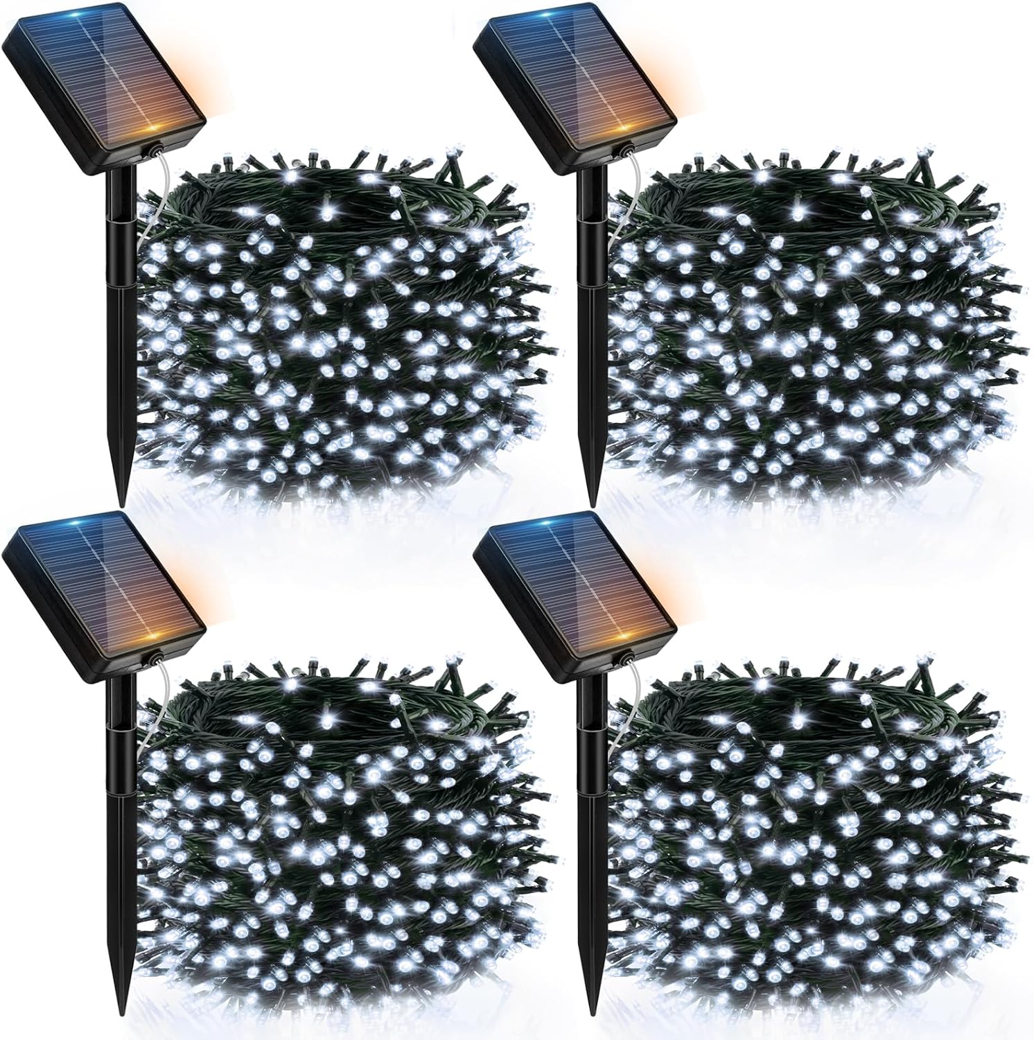 btfarm's newly upgraded solar Christmas lights outdoor are 39 feet long and feature 120 ultra-bright LED bulbs, making them ideal for decorating Christmas trees, gardens, campsites, backyards, balconies, fences, and other locations.SpecificationsTotal length: 14 M/45.9 FtLight String Length: 12 M/39 FtLead Wire Length: 2 M/6.56 Ft Number of Lights: 120 LEDs Special Features: 8 Modes, IP65 Waterproof Included in the Package: 4 x Solar String Lights 4 x Solar Panel 4 x Ground Stakes 8 x Screw 1 x User Manual