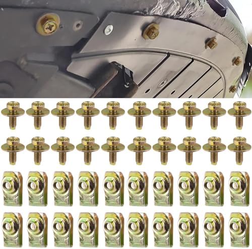 Bolt Size: M6-1.0 x 20mm long. 10mm hexBolt Total Length: 22.5mm/0.89 inchesWasher Diameter: 17mm/0.66 inchesClips Bore Diameter: 6mm/0.23 inchesClip Total Length: 25.5mm/1 inchClip Width: 14mm/0.55 inchesCan meet your daily needs and replacement.- Using a fixing clip can effectively increase the tightening tension, helping you to better strengthen and stabilize the fixing effect.- -Material:Carbon Steel and Zinc,suitable for car use.- -Easy to use, durable and practical.- -Installation:Easy to install and remove,No damage to the vehicle.- Features: 1. Premium Plastic: These car mounting clips are made of premium plastic, ensuring their durability. The robust material provides reliable support and abrasion resistance, guaranteeing the clips can withstand repeated use. Reliable Panel Securement: Whether you are replacing a damaged panel or perCompatible Forming routine maintenance, these clips ensure a tight and secure installation.