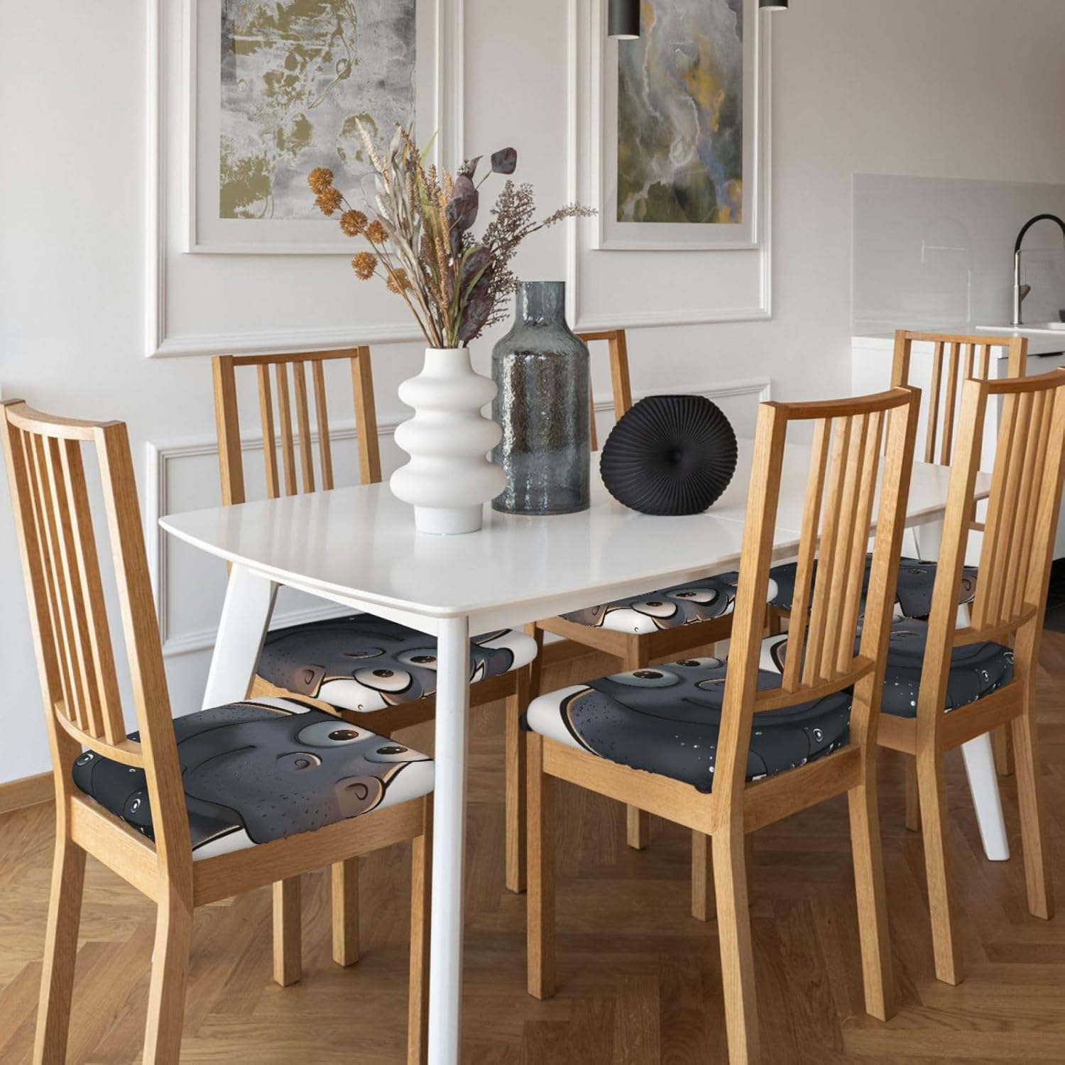 Our 6 Pcs set of square chair cushion covers are a wonderful addition to any seating area. Made of milk silk (94% polyester and 6% spandex), they offer a great combination of elasticity and comfort. With the unique design of elastic bands and 4 tie - straps (approx. 40cm each), these covers can be quickly installed on square chairs with sizes ranging from length and width of 35 - 48cm and thickness of 2.5 - 6cm. They are perfect for protecting your chairs from kids' doodles and pets' damage while enhancing the overall look of old chairs. These cushion covers can be used in various places such as offices, homes, cars, and wheelchairs, as well as for events like hotel functions, weddings, dinners, conferences, and family celebrations. What's more, they are easy to clean either by hand or gentle machine wash, ensuring they stay fresh all year round. They are also an ideal gift for your loved and colleagues.