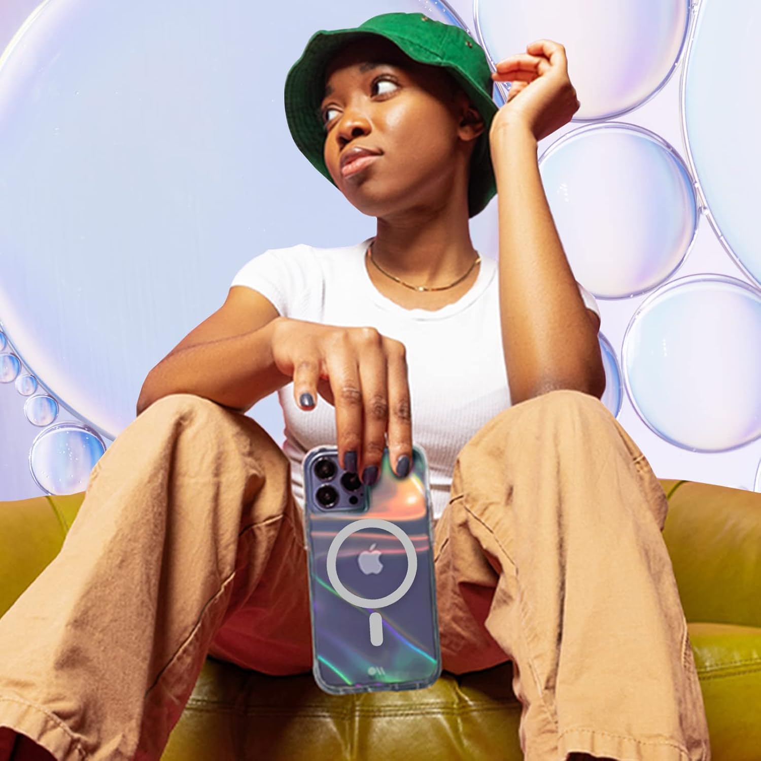 Our Soap Bubble case for iPhone 13 Pro features swirled iridescent printed patterns with holographic effects that change colors at every angle and give your case a different effect depending on the light of your surroundings and device color. Set your iPhone apart with this famous phone cover which gives off the dreamiest rainbow vibes! It also has 10ft drop protection, raised bezels, and anti-scratch tech to protect your case from accidental drops, bumps, or scratches and make sure it looks newer for longer. In addition, it has a built-in magnet for fast wireless charging and works seamlessly with all MagSafe accessories. All ports, buttons, and functions are easily accessible through precise cutouts.Case-Mate iPhone 13 Pro Case Features:10ft Drop ProtectionCompatible with Magsafe ChargingAnti-Scratch TechRecycled MaterialSlim DesignEasy ApplicationFlexible SidesEnhanced GripTactile ButtonsShockproofLimited Lifetime WarrantyWho are we: Since 2005, we’ve been setting the standard for stylish innovation, evolving from fashion-forward phone cases to a curated line of award-winning accessories, including our viral Jelly Tote Bags. The Jelly Tote Collection—featured in Oprah Daily, Good Housekeeping, Travel + Leisure, and more—offers a range of silhouettes, colors, and materials that are lightweight, packable and washable, made to elevate every day and getaway. Our latest iPhone 17 Case Collection combines new elevated designs with enhanced protection, designed to keep your favorite accessory safe and stylish!