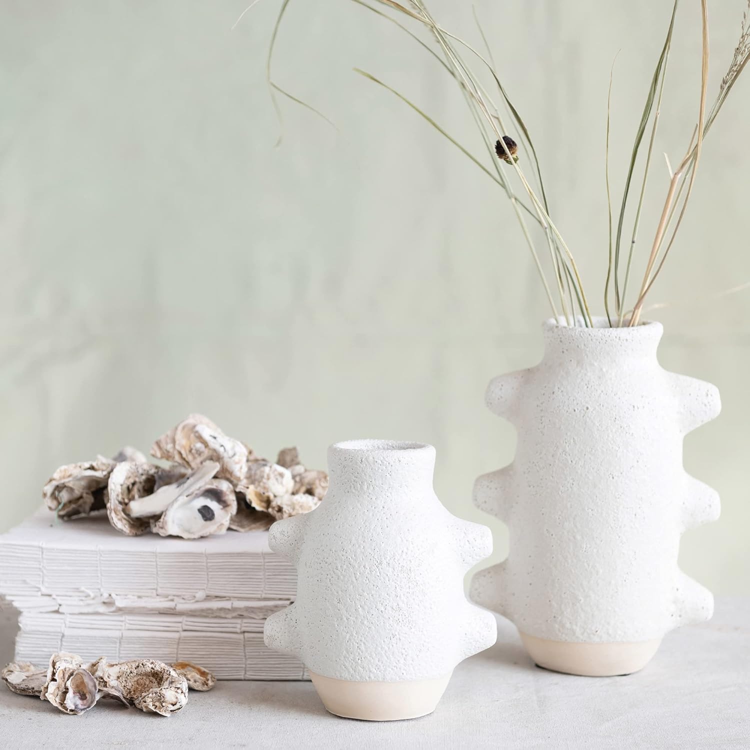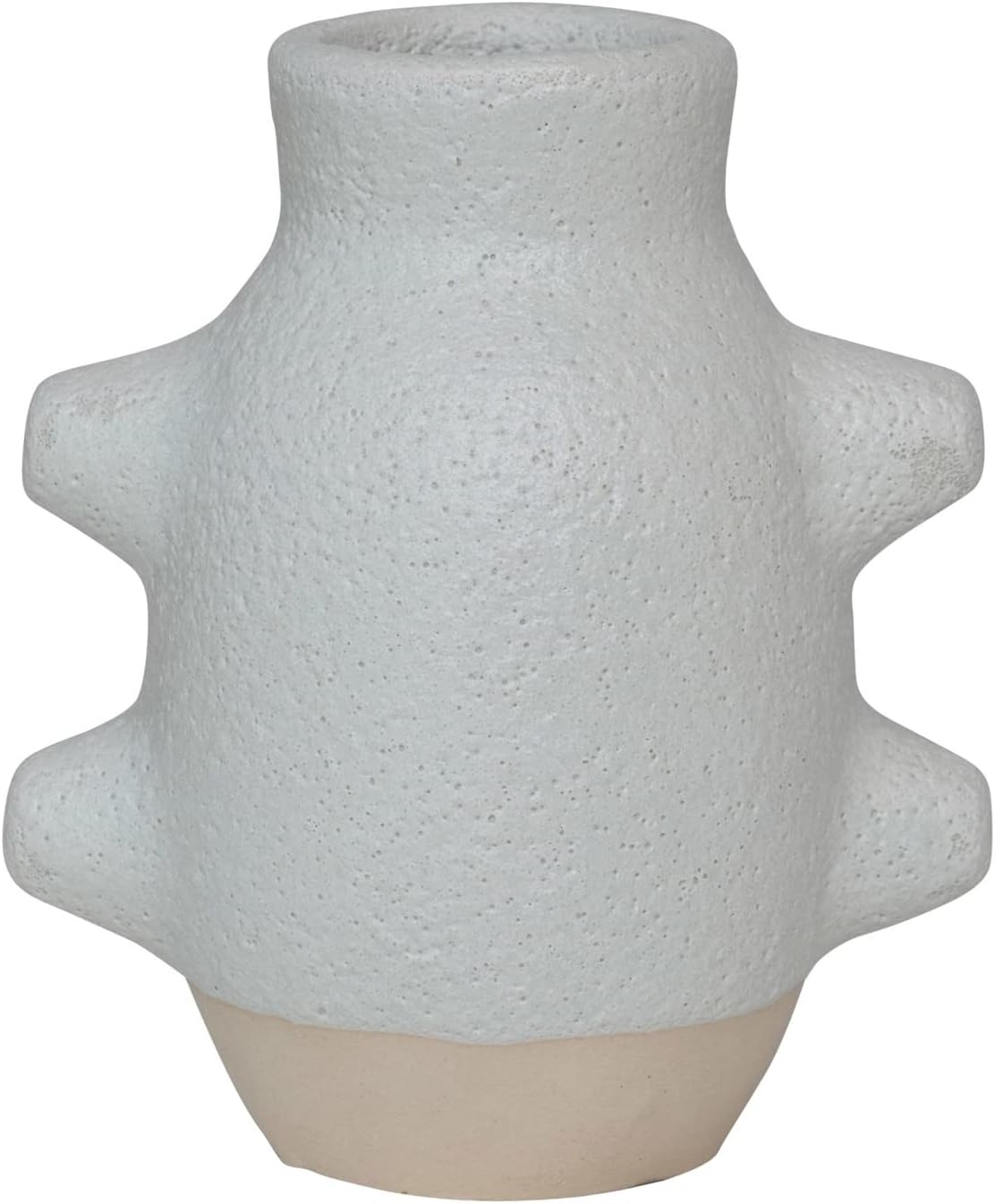 This contemporary stoneware vase showcases an abstract silhouette in a textured volcano finish; 100% Stoneware; 6.25" L x 4.25" W x 9" H