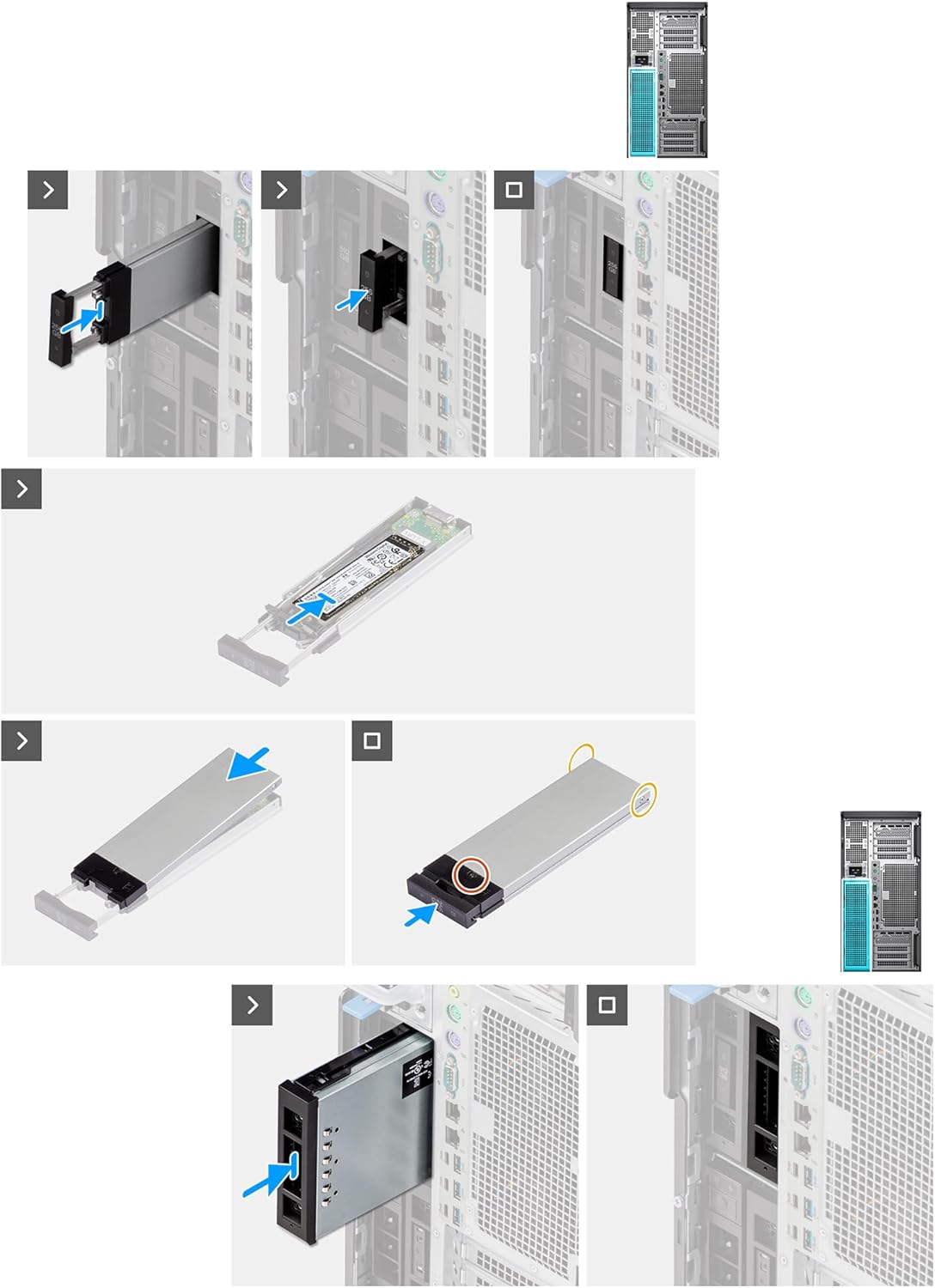 This is a M.2 Flex Bay Module Carrier cage help you installing the external M.2 2280 solid-state drive in Dell Precision 7960 7920 7820 7865 5860 series Tower workstation, Upgrading Storage in the Tower Workstations. D P/N: DPWC700, 66XHV, 066XHV; 5C9PM, 05C9PM; JX33G, 0JX33GPart Desc: ASSY, MECH, M.2, MODULE,BAY Reference list of compatible with models: - Precision 7960 (T7960) - Precision 7920 (T7920) - Precision 7820 (T7820) - Precision 7865 (T7865) - Precision 5860 (T5860) - Precision 5820 (T5820) - Precision 5810 (T5810) What’s in the box: 1x 3.5" M.2 Flex Bay Module Carrier cage