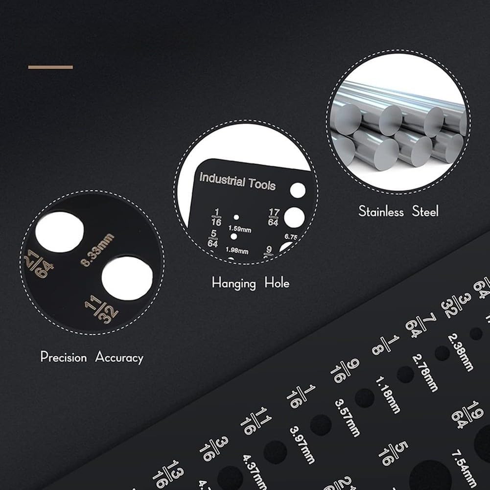 Features:Precise Measurement: Precisely measures drill bit diameters from 1/16 inch to 1/2 inch, allowing you to select the appropriate tool.Stainless Steel Construction: Made of for durable stainless steel, long-lasting durability in industrial environments.Compatibility: Supports both metric and for imperial units, suitable for various drilling applications.Clear and Easy-to-Read Design: Clear scale markings allow for quick and accurate identification of drill bit sizes.Compact and Portable: Lightweight and portable, convenient for use in various workshop environments.Specifications:Part Name: Diameter GaugeMaterial: Stainless SteelColor: BlackSize: 15.1 * 7.6 cmPackage Contents:1 * Ruler