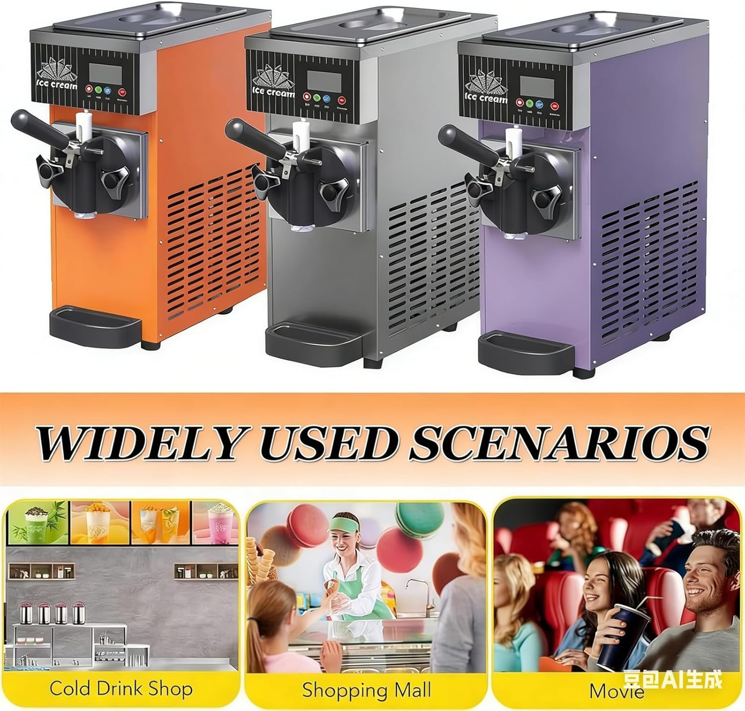 Commercial soft serve ice cream machine can produce 80-100 soft serve ice creams per hour, each weighing 80 grams, with stable output. You can easily prepare delicious soft ice cream and fruit desserts.Specifications:Product Name: Commercial Ice Cream MachineMaterial: Stainless steelRated Power: 450WHopper Capacity: 2.5LFreezing Cylinder Capacity: 1LProduction Capacity: 4-5L/HDisplay Type: LED screenProduct Dimensions: 20 x 40 x 51 mmPacking Dimensions: 48 x 25 x 55 mmNet Weight: 20 kgGross Weight: 21 kgFeatures:- Produces 80 to 100 popsicles per hour (80g each).- Rapid cooling, cooling to -18°c in 5 minutes, enabling all-day production.- Touchscreen controls for one-touch temperature and hardness adjustment (78% freshness).- One-touch cleaning activates the cleaning process to thoroughly rem-ove ice-residue from the ice cylinder.- An improved expansion pump increases air mixing by 37%, resulting in a rich, cloudy taste.- Perfect for creating soft ice cream, sorbet, yogurt, and a variety of other desserts.Packing list:1 X Soft Ice Cream MakerNote:1. The bowl material does not have precooling or fresh-keeping functions.2. This product does not contain refrigerant.