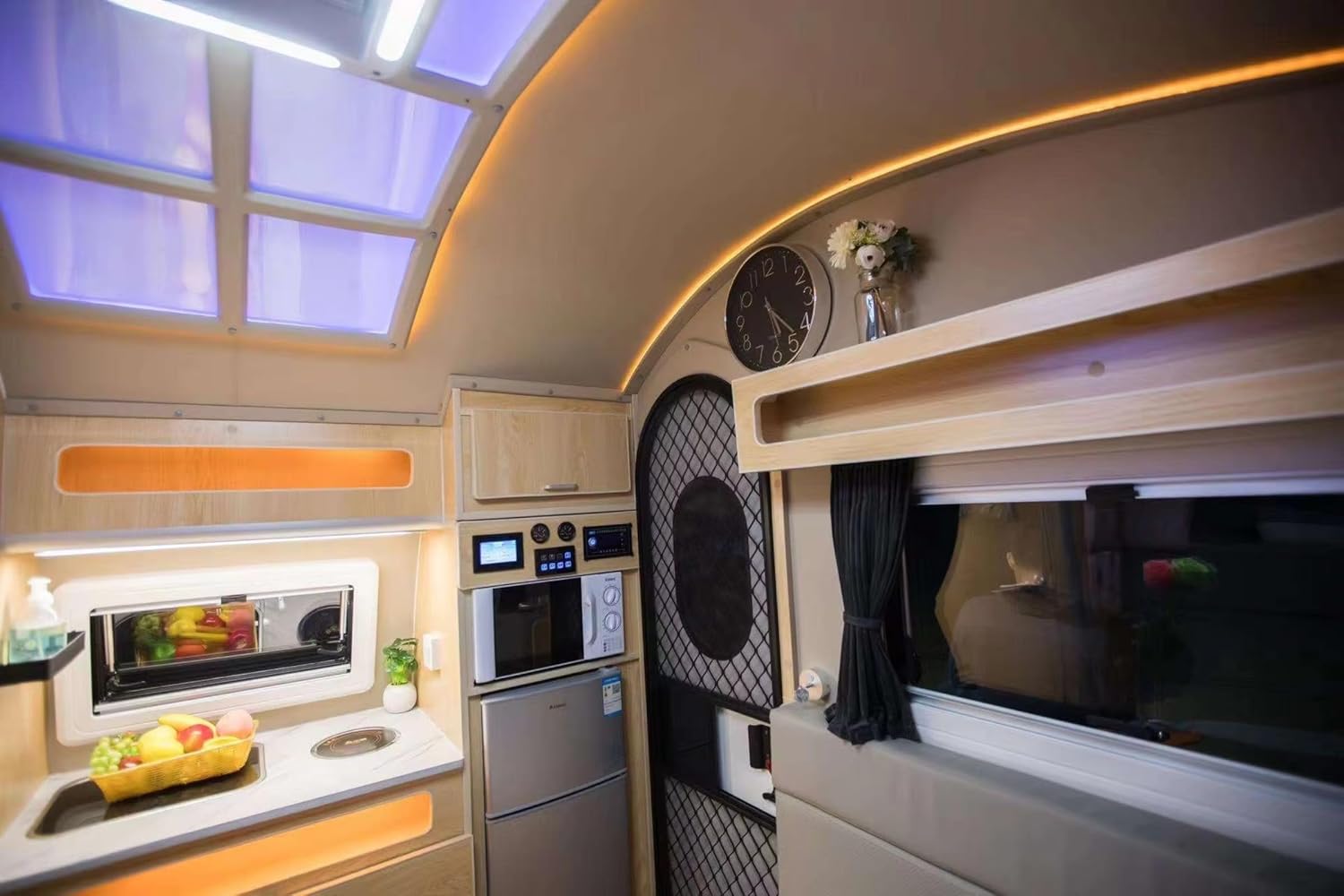 A camper van is a mobile living vehicle that combines transportation and living space, equipped with essential facilities such as a bed, sink, cabinets, table, and solar power system for daily use. Its key benefit is convenience—allowing you to travel freely, live comfortably, and enjoy off-grid adventures anytime without relying on hotels or fixed facilities. Type:pop-up caravan, Motorhome Application:Travel, Outdoor Kitchen:slide-out stainless steel 304 Style:Modern, Trendy Use:Travel Trailer, camper truck , outdoor travel Material:stainless steel color:custom