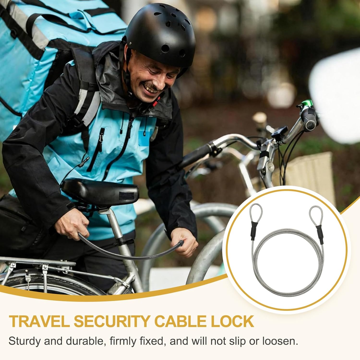 Reasons for selection:Locking cables use robust 7×7-strand galvanized steel wires with high toughness, providing excellent corrosion and rust resistance; the wires are fully sealed in a smooth vinyl coating that avoids surface scratches on both the cable and contact surfaces, prevents accidental hand cuts, enhances waterproofing and long-term durability, and keeps the cables flexible for easy bending and twisting.Measurement:Color: Clear; Material: Vinyl, PVC, Galvanized Steel; Length: 1000mm / 39.4 inch / 3.3 ft; Wire Diameter: 5mm / 3/16 inch; Package: 1 Pcs x Security CableSuitable for:Security steel cables serve as versatile locking accessories, suitable for securing luggage, bicycles, doors, and similar items. Travel security cable lock suitable for a wide range of lock types, including U-locks, padlocks, and disc locks. These steel cables are also commonly used in scenarios like garden setups, clothing adjustments, cord pulling, pet leashes, picture hanging, and railing installations.Installation:The outdoor travel safety cable adopts a double-loop design, with ring-shaped structures integrated at both ends and a spacious link space. Designed for travel scenarios, it fits compactly in backpacks or pockets for hassle-free portability. Double-loop structure is specifically optimized to work seamlessly with small combination locks and padlocks, meeting on-the-go security needs.Kind tips:Do not use for lifting or pulling heavy objects, use only for safety ropes and hanging lightweight.