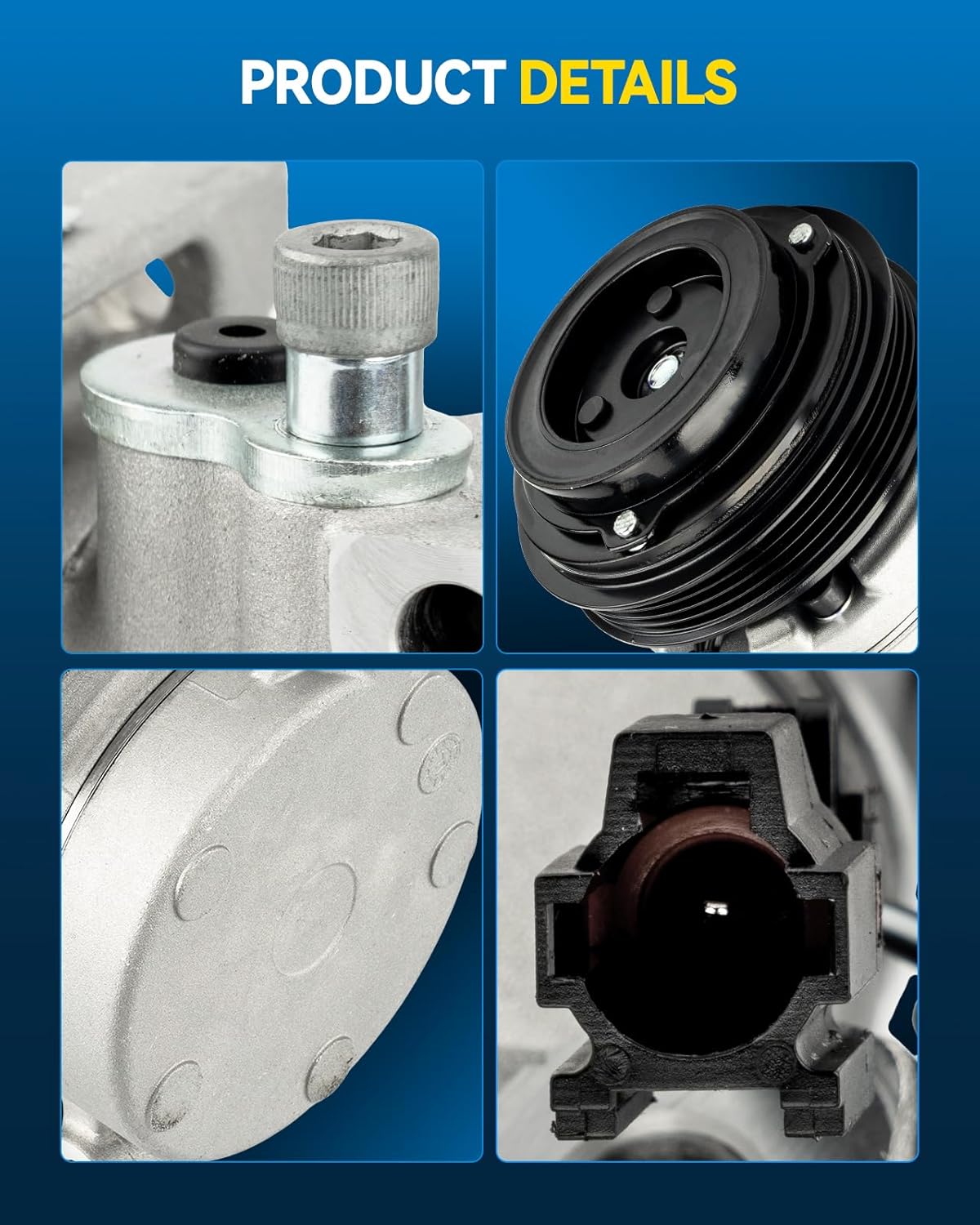 【Specification】Fitment Type: Direct ReplacementPlacement on Vehicle: FrontPackage Included: 1 x Air Conditioning CompressorFeature: Creative Design, Durable Material, Beautiful Appearance【Compatibility Information】Replacement for Sorento 2003-2006【Part Number】700746,610168,0610168,5512206,CS20139,6512206,58190,4716014,2021500R,7512206,57190,1521762,147004NC,977E205,97701E205,275495,C1552,CO10822C,19192408,2021500AM,147004,2021500,977013E200,977013E200RU,638981,TEM275495,7421436,147004NEW,1864X,901900,89271,CO10822AN,CO10822RY,CO10822Z,203334T1NEW,AC1202180,CWK638981,CO10822X,11158190,3693185,CO10822SC,202180,CO4053CA,T58190,202180N,A75495【NOTE】Please double check the part number of your item, matching information is for reference only.Please enter your vehicle's year/make/model and then check the fitment.