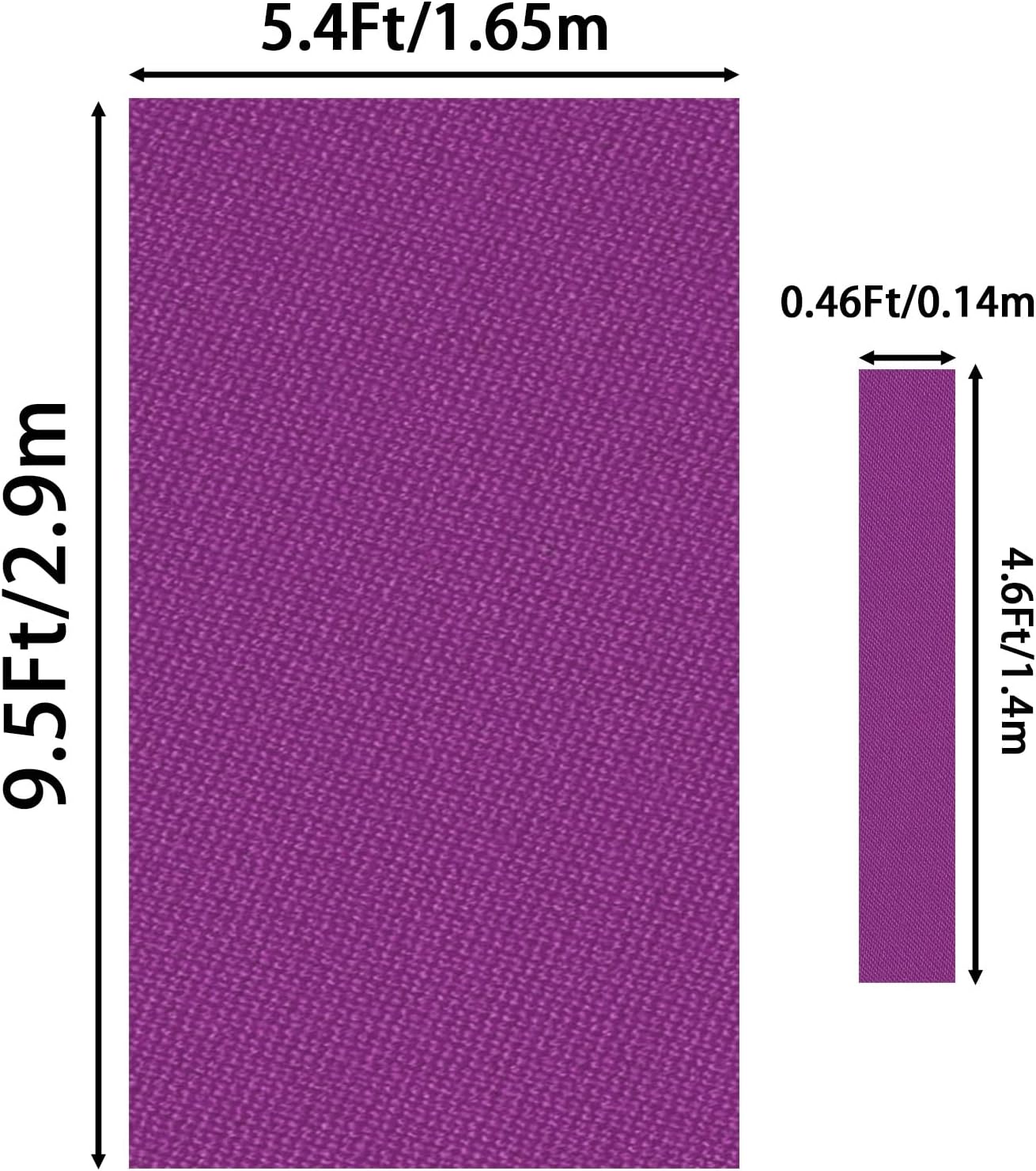 Specification:Material: 100% polyesterBed Cloth Size: Approx. 2.9 x 1.4m/ 9.5 x 4.6ftCushion Cloth Strip: Approx.1.4 x 0.14m/ 4.6 x 0.46ftColor: Blue , Gray , Green , Purple , Red , Spruce Green (Optional)Package Includes:1 Piece Billiard Table Cloth6 Pieces Cushion Rail StripsThe combination of 100% polyester materials makes the pool tablecloth more compact with a higher density, achieving a faster ball speed than that from other materials in the market. Say goodbye to faded, worn-out cloth. Our replacement kit instantly revitalizes your pool table's appearance, adding a touch of sophistication to any room. Choose from a range of colors to match your style and décor seamlessly.Whose surface is relatively smooth, the grinding resistance is small, and the ball speed will be fasterKind reminder:1. Daily maintenance involves using a specialized billiard ball brush to brush the billiard ball cloth and remove dust such as chalk powder.2. Every once in a while (depending on the length of time the billiard table has been used), usually a week or half a month, iron the table with a billiard iron to restore the fabric to a flat surface.