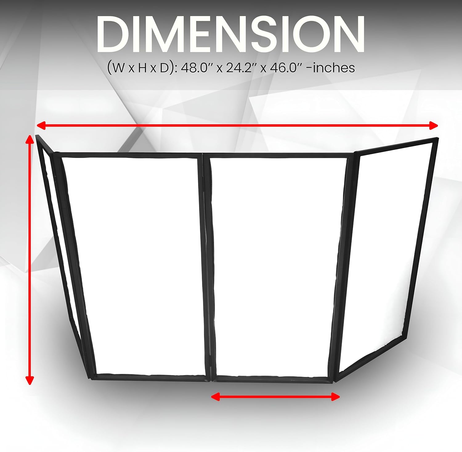 Pyle DJ Booth Cover Screen - DJ Facade Front board Display Scrim Panel - Features: Provides A Clean Look to Your DJ Presentation Setup - Allows you to Add Cool Lighting Visual Effects - Perfect for Cable Management & Concealment - Thick & Stretchable Lycra Material for Smoothness - Hassle-Free Quick Setup Design - Easily Folds Open & Closed - Machine Washable Material - Lightweight & Portable - Includes Travel/Storage Bag - Perfect for On-Stage or In-Studio Use - Total Assembled/Extended Size (W x H x D): 48.0'' x 24.2'' x 46.0'' - Individual Panel Size: 24.2'' x 46.0'' -Each - Weight: 17.41 lbs. - Pyle Model: PDJFAC12.