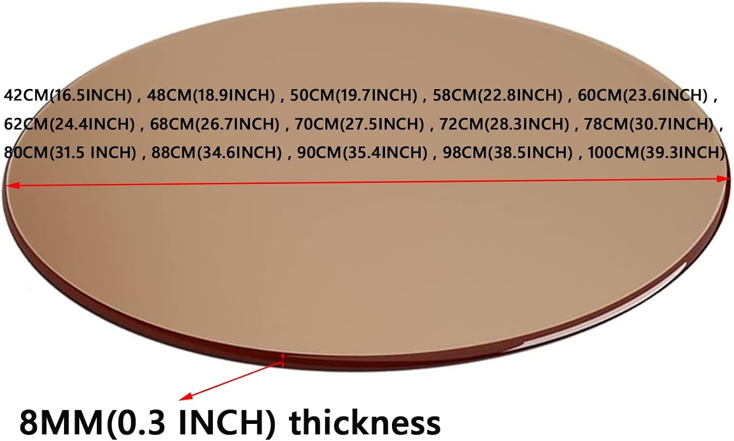 The round decorative glass table top is made of 8mm tempered glass, which is strong and wear-resistant, has high hardness, impact resistance, high temperature resistance, is flat and smooth, and can be matched with any furniture.Name: Round tempered glass desktop countertopShape: roundColor: golden brownMaterial: tempered glassFeatures: high strength/easy to clean/high temperature resistance/wear resistance/safer to useUsage: used on dining tables, coffee tables, office desks