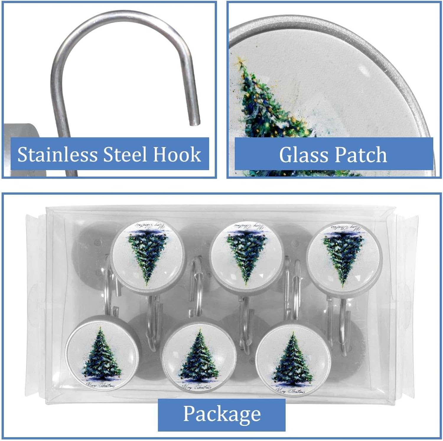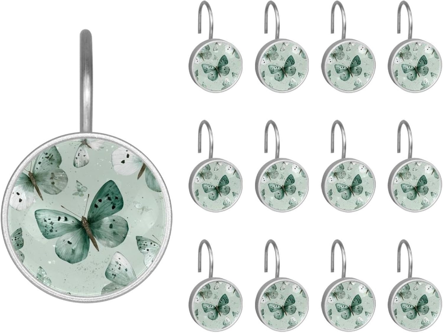 MATERIAL: glass, stainless steel. These shower curtain hooks can be decoration bathroom and will be long-lasting.12 pieces of shower curtain hooks, round crystal glass decoration, printed patterns, silver hooks to match various styles of bathroom shower curtains. SIZE: Crystal glass diameter of round shower curtain hook is 1.45x1.45in/ 3.7x3.7cm. The shower curtain hooks diameter is about 1.1in, 12 pieces shower curtain hooks are suitable for rod of 8-28mm(0.3"-1.1"). RUST RESISTANT:Shower hooks are made of stainless steel and crystal glass, which is durable, rust-proof and corrosion-resistant, it will not rust suitable for wet bathroom environment. EASY TO INSTALL:Hand the shower curtain hooks hold securely on straight or curved shower curtain rods,slid easily and smoothly. Easy to install and decorate your bathroom. BEAUTIFUL AND ELEGANT:Beautiful Love hook add charming scenery for your bathroom, baby room, bedroom, living room, and the gorgeous style is easy to match with any kinds of bathroom shower curtain. EASY GLIDE: Open and close your shower curtain quickly and easily with the Shower Hooks, easily glides on shower curtain rods and tension rods. No snagging; no effort; no hassle PACKAGE: 12 shower curtain hooks in a pack.The bathroom curtain hook has a smooth appearance and can be hung on the pole to pull it at will. Special price 12 sets to meet your needs.
