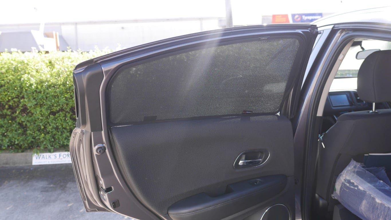 Genuine Snap Shades for Honda HRV/Vezel/XRV 2nd Generation Car Rear Window Shades (RU; 2014-2022) ARPANSA tested to provide 84.6% UVA and UVB Protection. It's a perfect fit for Honda HRV/Vezel/XRV 2nd Generation (RU; 2014-2022)Snap Shades are magnetic, perfectly fitted car window sunshades designed to help you readily protect your passengers from harmful UV rays, heat, glare and insects. A set of two (2) magnetic car sunshades for the rear passenger windows (left and right doors).Perfectly fitted car window shades of the highest quality, using German technology material and developed by employing the latest 3D laser scanning technology.Ensures maximum protection from the sun.Blocks heat, glare and harmful UV rays.The sunshade material creates a layer of protection, acting as an insect screen.Retain full functionality of car windows when stationary with Snap Shades installed. Car windows can be open partially for ventilation when driving.Easy to install and remove due to high strength magnets embedded in the shade frame.The perforated shade material maintains visibility through the glass, even in the dark.