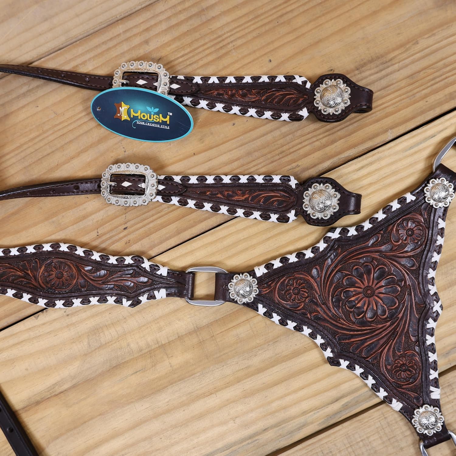 Crafted for performance, style, and tradition, this Western Leather Headstall and Breast Collar Tack Set from MOUSM is a showstopper. Made from premium Argentina cowhide, this set showcases crisscross rawhide braiding and intricate hand-tooled floral carvings, reflecting true Western craftsmanship. A Gladiator-inspired design makes it perfect for rodeos, barrel racing, or simply turning heads on the trail. Featuring antique nickel hardware and copper-riveted buckles, it’s built tough yet radiates elegance. Whether you're buying for yourself or as a gift for a horse lover, this headstall and breast collar combo is both a performance enhancer and a fashion statement.